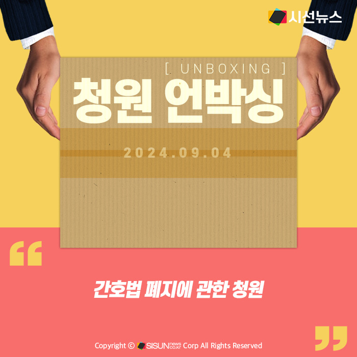 시선뉴스=정혜인 기자ㅣ국회는 일을 해야 마땅하다! 국민이 국회나 국가기관에 대해 자신의 의견이나 희망을 진술하는 국회의 ‘국민동의청원’. 그 중에 이슈가 되는 사안, 또는 이슈가 되어야 할 사안을 언박싱 해본다.