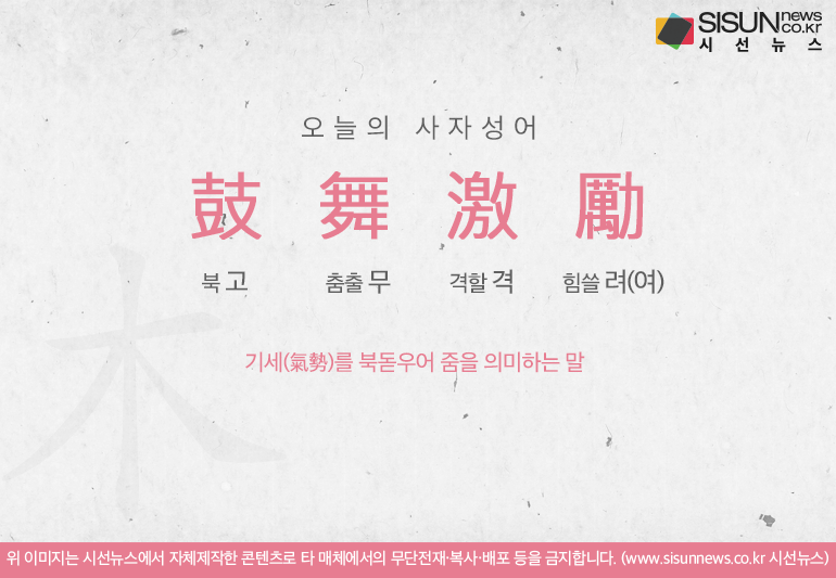 오늘의 사자성어 고무격려[鼓舞激勵]입니다.