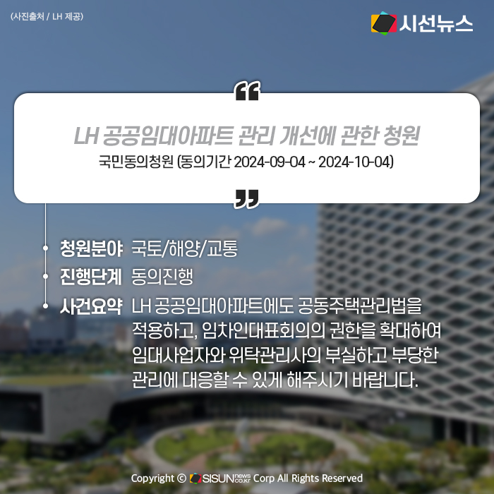 - LH 공공임대아파트 관리 개선 요구