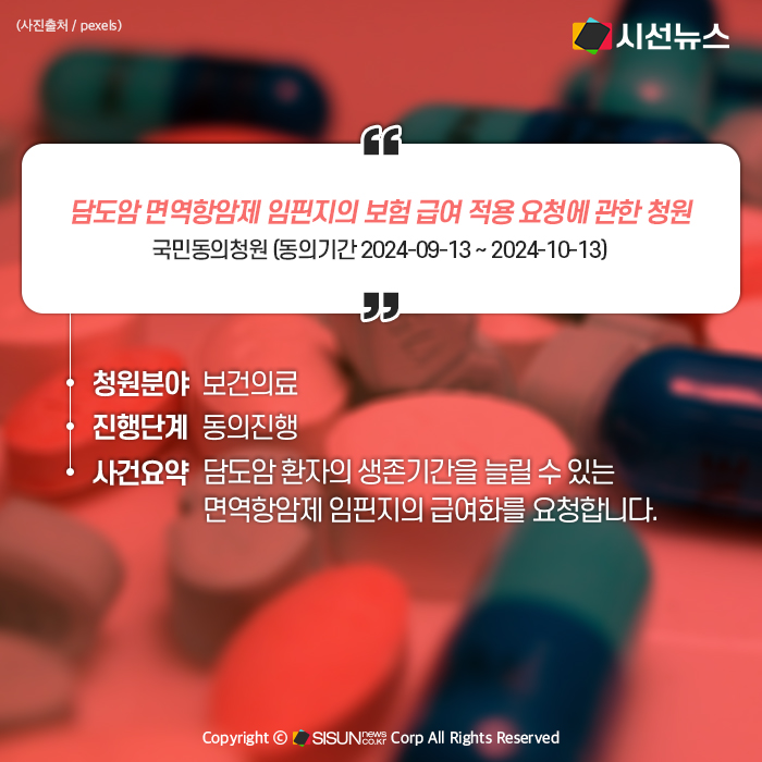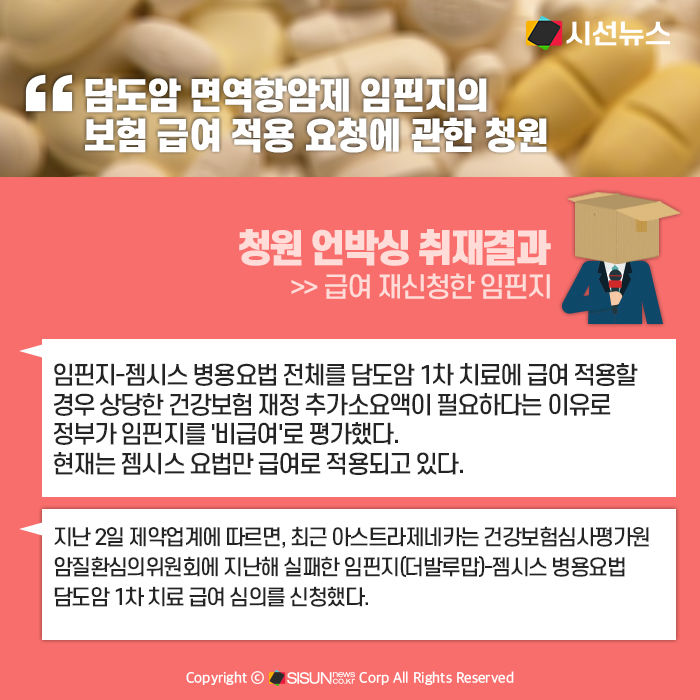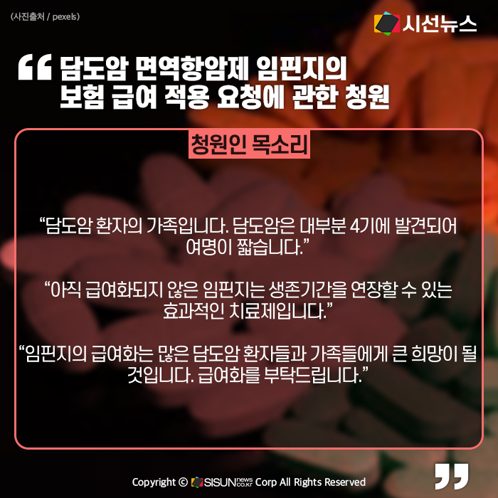 - 담도암 면역항암제 임핀지의 보험 급여 적용 요청에 관한 청원
