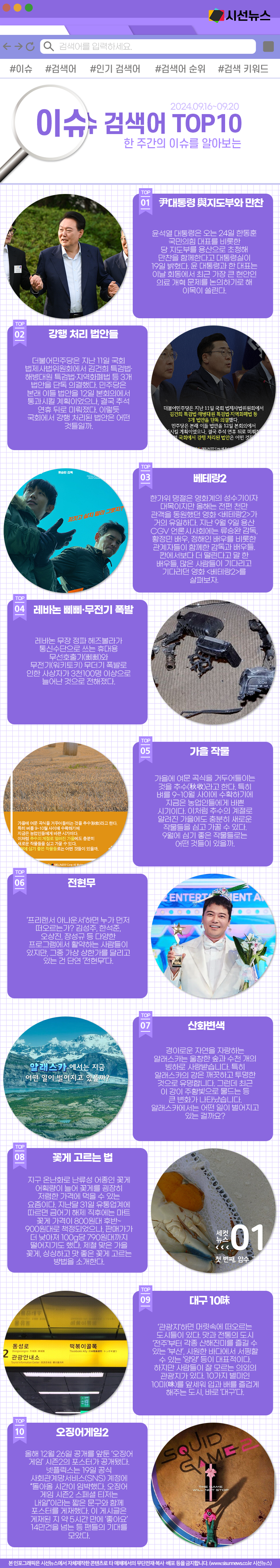 시선뉴스=박진아 기자 / 디자인=김선희 proㅣ지난주 한주간의 이슈 Top10입니다. 지난주에는 어떤 키워드들이 이슈가 되었을까요?