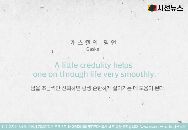 ‘남을 조금씩만 신뢰하면 평생 순탄하게 살아가는 데 도움이 된다.’ <개스켈>