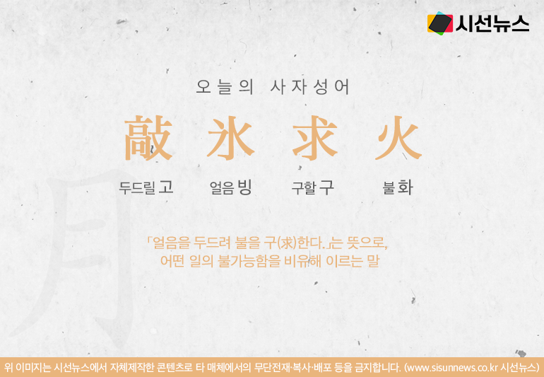 오늘의 사자성어 고빙구화[敲氷求火]입니다.