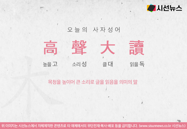 오늘의 사자성어 고성대독[高聲大讀]입니다.