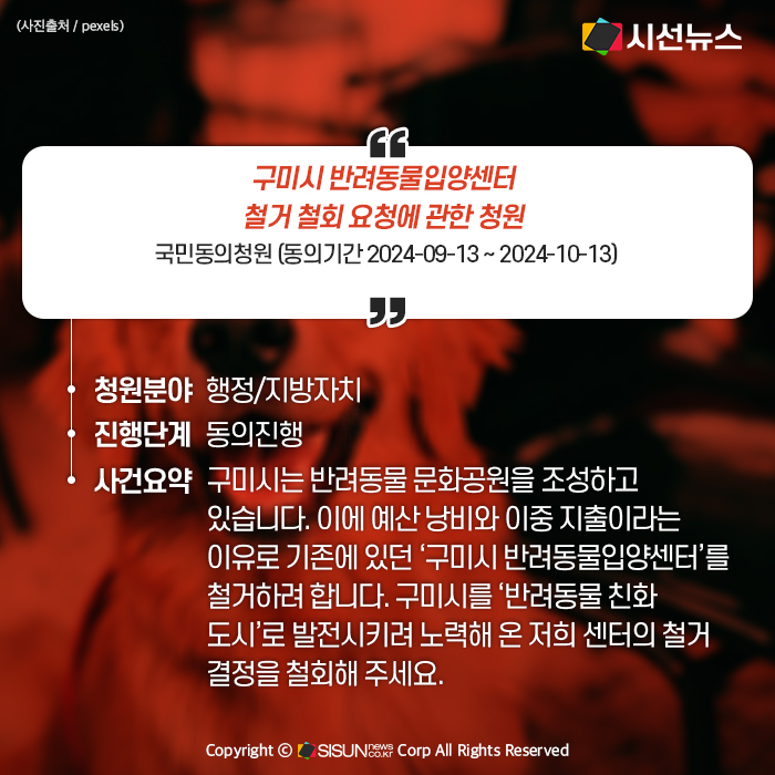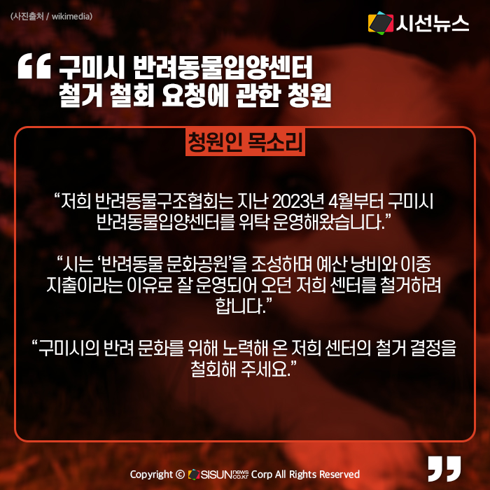 - 구미시 반려동물입양센터 철거 철회 요청에 관한 청원