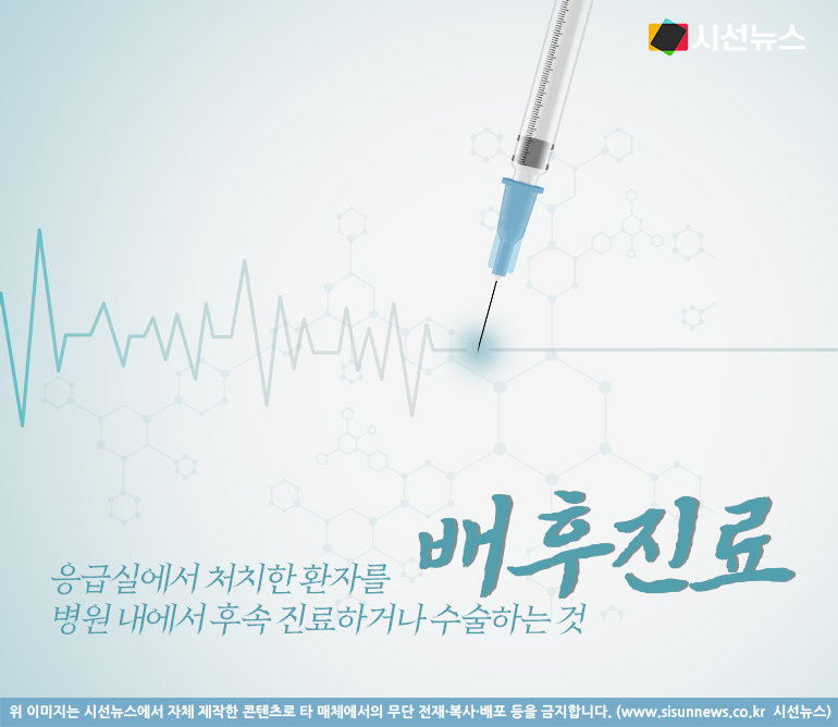 배후진료는 응급실에서 처치한 환자를 병원 내에서 후속 진료하거나 수술하는 것을 말한다. 수도권의 많은 전문의들은 최근 논란이 되는 '응급실 뺑뺑이'의 핵심 원인은 배후진료 차질에 있다고 토로한다. 응급실 인력 부족도 문제지만, 응급실에서 처치한 환자를 병원 내에서 후속 진료하거나 수술할 의사가 없는 게 현 사태의 핵심이라는 것.