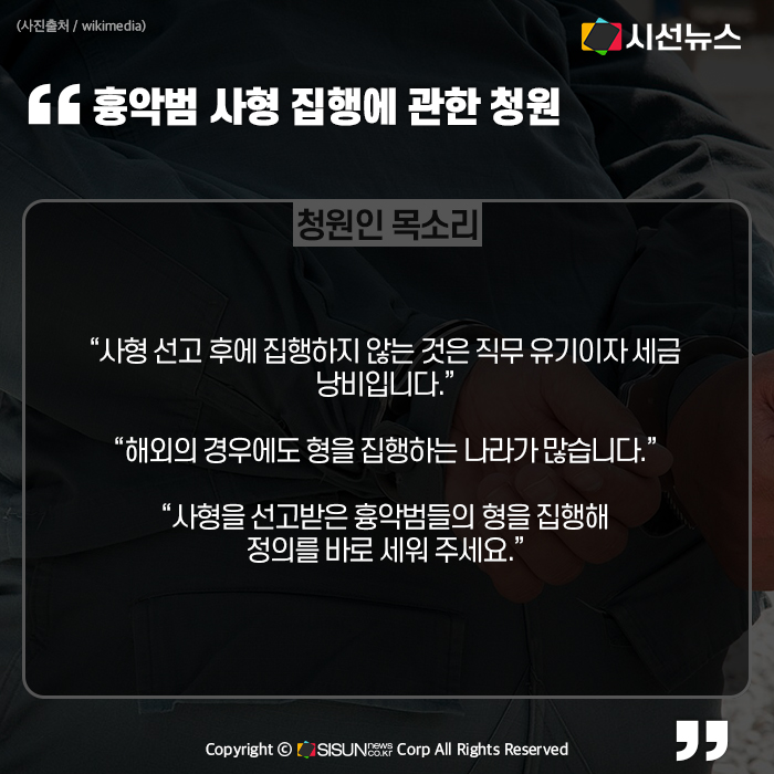 아무리 흉포한 죄를 지었더라도 사형선고는 커녕 무기징역에 그치는 경우가 많으며, 설령 사형을 선고후 대법원에서 사형확정하면 집행을 하지 않으니 무기징역과 다를게 없는 이상 범죄자들은 두려움없이 죄를 범하고 있습니다. 피의자의 인권 이 더 중요한가요 아니면 피의자한테 죄 없이 억울하게 죽임을 당한 피해자인가요 제발 부탁합니다. 검찰에서 사형구형은 하는데 한번씩 1심선고는 사형 선고를 해도 피고인이 항소 하면 2심에서 무기징역 으로 감형을 받습니다.