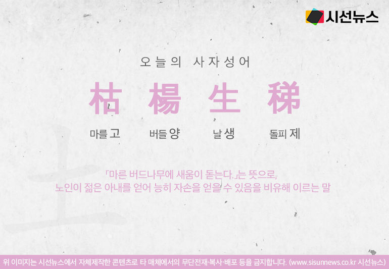 오늘의 사자성어 고양생제[枯楊生稊]입니다.