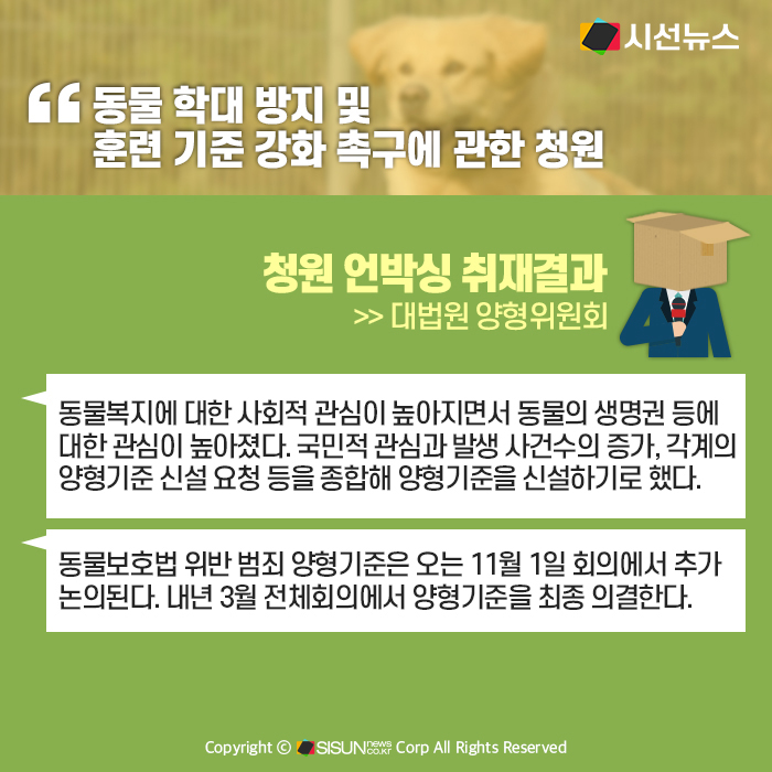 - 동물 훈련 방식에 대한 법적 규제 마련 촉구