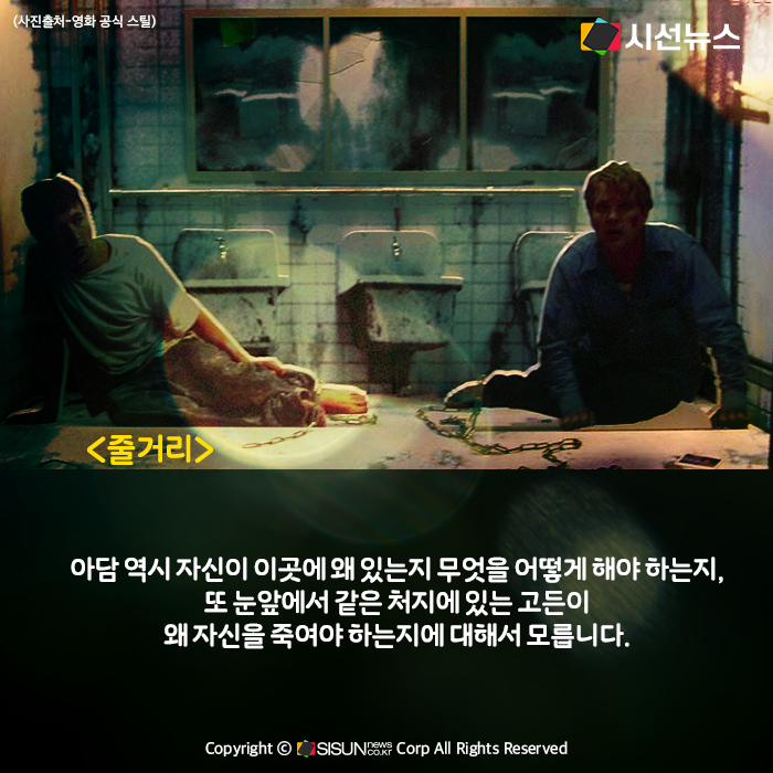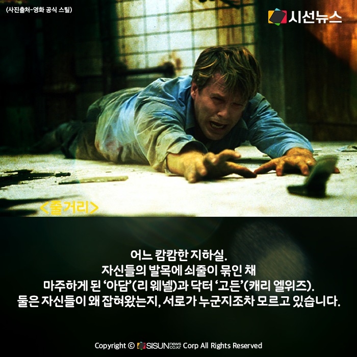 시선뉴스=박진아 기자ㅣ가족과 함께 할 때, 혼자서 울고 싶을 때, 사랑하는 연인과 로맨스를 한껏 더 즐기고 싶을 때, 당신은 어떤 영화를 선택하나요? 많은 영화들 속에서 결정을 내리기 어려운 당신에게 영화를 추천, 요리합니다. 오늘의 영화는 ‘쏘우(Saw, 2004)’입니다.