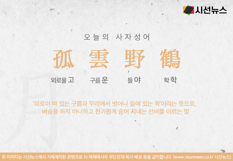 오늘의 사자성어 고운야학[孤雲野鶴]입니다.