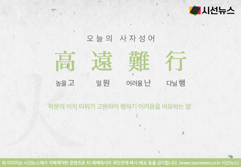 오늘의 사자성어 고원난행[高遠難行]입니다.