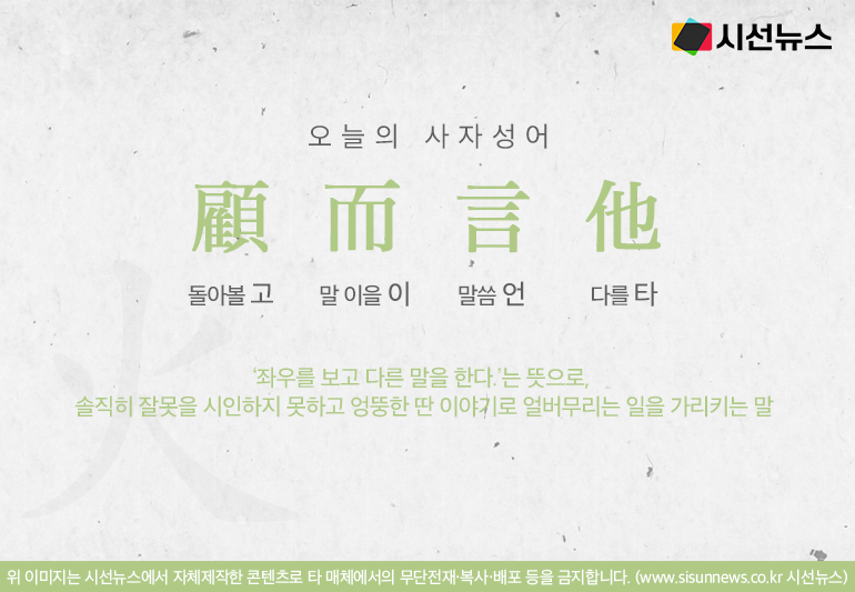 오늘의 사자성어 고이언타[顧而言他]입니다.