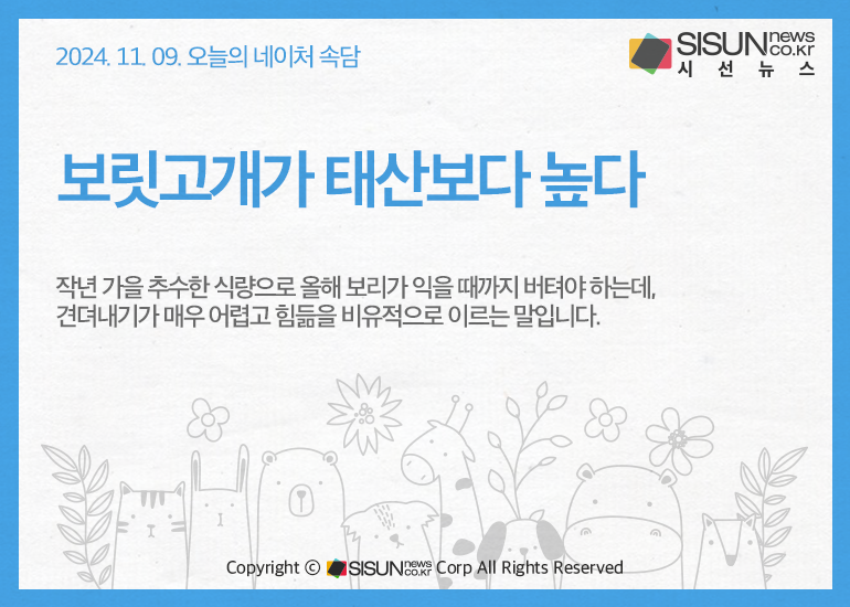 오늘의 네이처속담은 <보릿고개가 태산보다 높다>입니다.