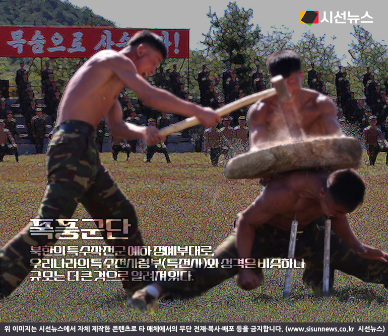 폭풍군단 출신인 이웅길씨(43)는 지난달 30일 연합뉴스와 진행한 인터뷰에서 과거의 기억을 말했다. 이씨에 따르면 폭풍군단 부대원은 신체 조건은 물론이고 ‘토대’, 즉 출신에 문제가 없는지 따져보고 선발된다. 1년간 공통 신병 훈련 후에는 격투기 유단자와 체력이 우수한 부대원을 선별해 혹독한 훈련을 거쳐 정예 전투원을 양성한다.