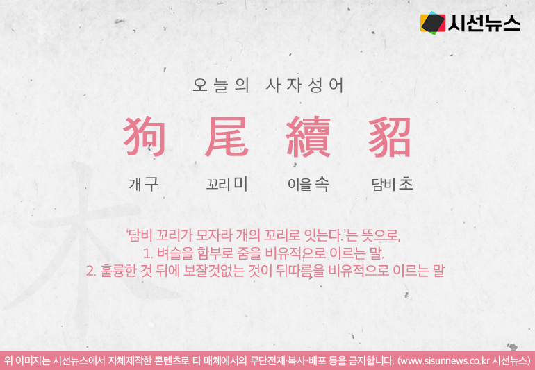 오늘의 사자성어 구미속초[狗尾續貂]입니다.
