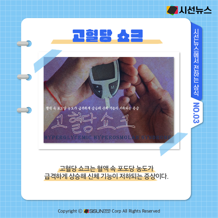 고혈당 쇼크는 혈액 속 포도당 농도가 급격하게 상승해 신체 기능이 저하되는 증상이다. 고혈당과 저혈당 모두 ‘당뇨병’ 범주로, 보통 고혈당으로 인한 당뇨병은 신체가 서서히 망가지게 하는 반면, 저혈당으로 인한 쇼크는 일순간에 생명을 위협한다고 알려져 있다. 하지만 고혈당인 경우도 쇼크를 유발할 수 있어 주의해야 한다.