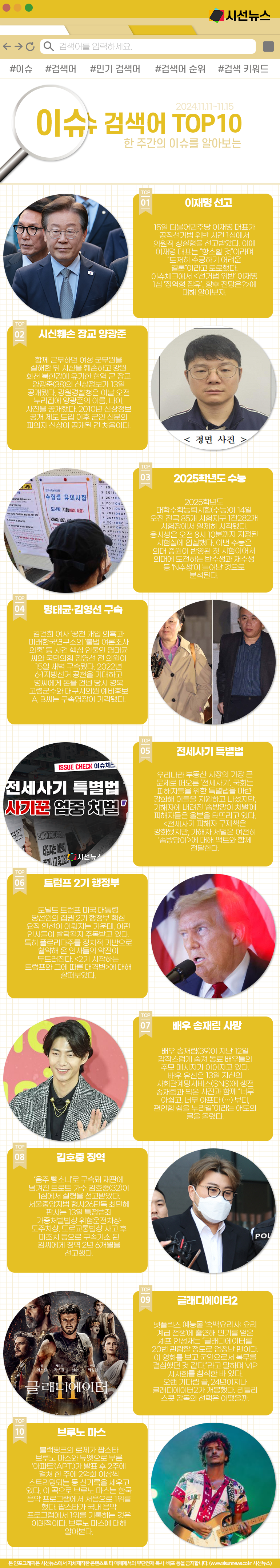 시선뉴스=박진아 기자 / 디자인=김선희 proㅣ지난주 한주간의 이슈 Top10입니다. 지난주에는 어떤 키워드들이 이슈가 되었을까요?