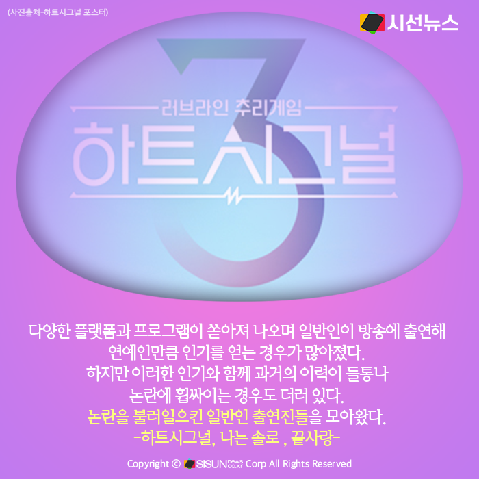 시선뉴스=양원민 기자ㅣ다양한 플랫폼과 프로그램이 쏟아져 나오며 일반인이 방송에 출연해 연예인만큼 인기를 얻는 경우가 많아졌다. 하지만 이러한 인기와 함께 과거의 이력이 들통나 논란에 휩싸이는 경우도 더러 있다. 논란을 불러일으킨 일반인 출연진들을 모아왔다.