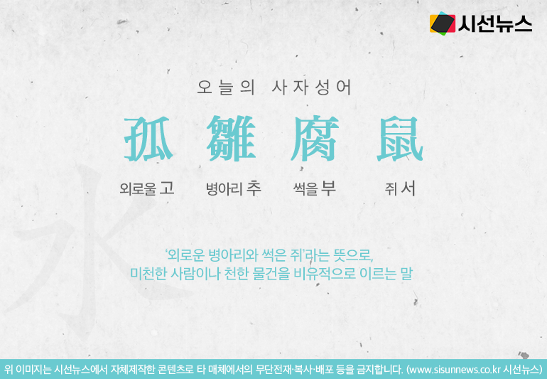 오늘의 사자성어 고추부서[孤雛腐鼠]입니다.