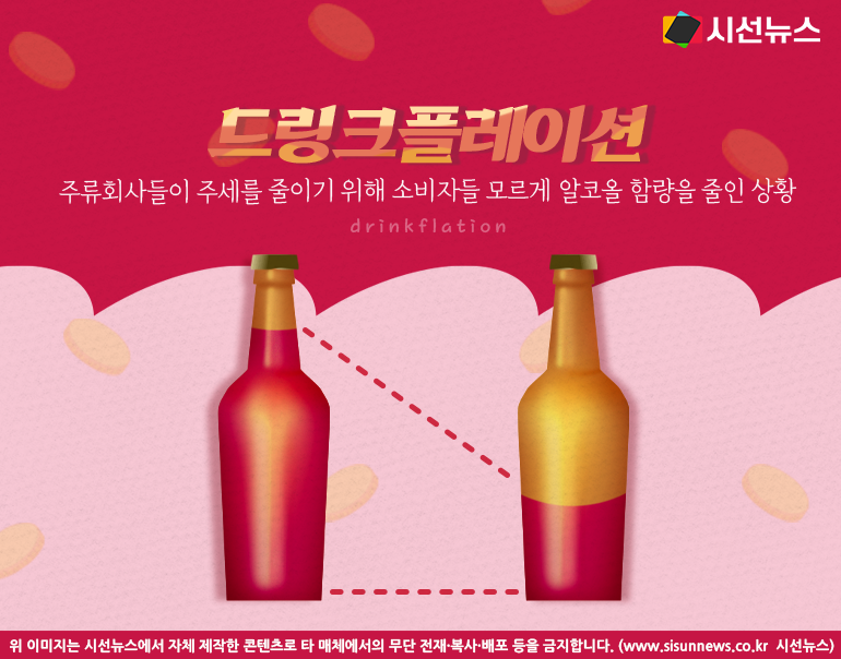 ‘드링크플레이션(drinkflation)’이란 주류회사들이 주세를 줄이기 위해 소비자들 모르게 알코올 함량을 줄인 상황을 반영한 단어다. 이는 기업들이 제품 가격을 그대로 유지하면서 제품의 크기나 중량을 줄여 사실상 값을 올리는 효과를 만드는 ‘슈링크플레이션(shrinkflation)’에 빗댄 것이다.