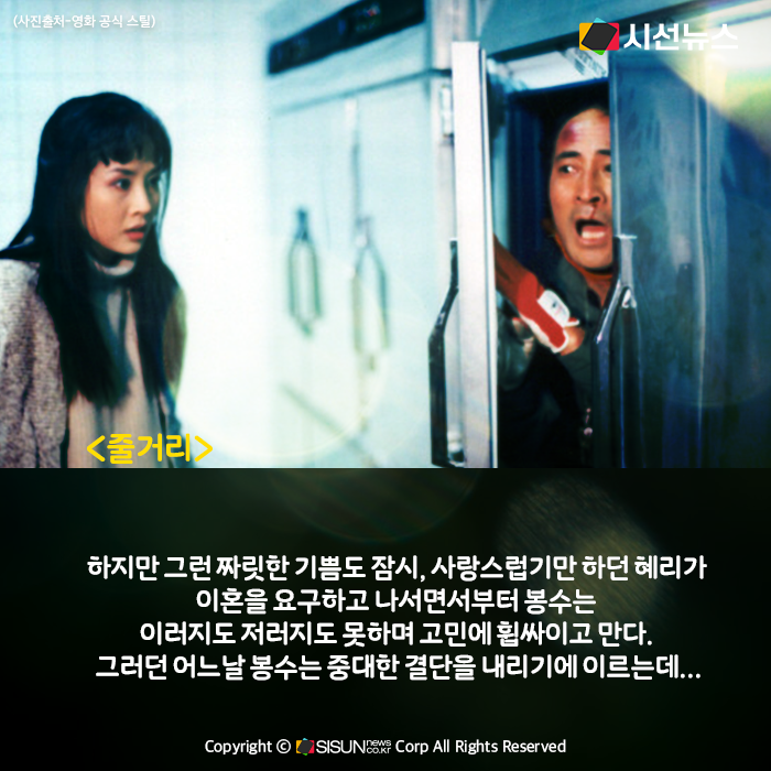 그러나 봉수에게는 괴로운 일만 있는 것은 아니었다. 옆에만 서 있어도 찬바람이 쌩쌩도는 깐깐한 마누라의 눈을 피해 자신이 제작하는 영화의 매력적인 여배우 혜리(엄정화 분)와 친해지게 되면서 숨통이 트이게 된다. 하지만 그런 짜릿한 기쁨도 잠시, 사랑스럽기만 하던 혜리가 이혼을 요구하고 나서면서부터 봉수는 이러지도 저러지도 못하며 고민에 휩싸이고 만다. 그러던 어느날 봉수는 중대한 결단을 내리기에 이르는데...