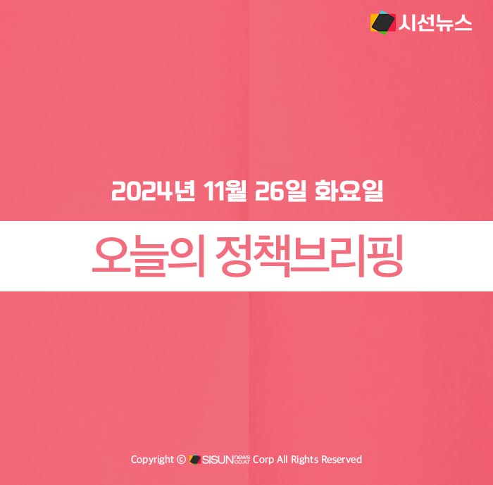 시선뉴스=양원민 기자 | 대한민국 정부 19개 부처에서는 추진하는 행정과 정책을 담은 보도 자료를 배포한다. 2024년 11월 26일 오늘의 정책브리핑을 소개합니다.
