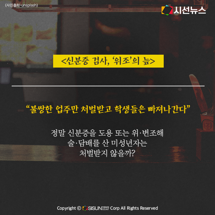 이에 “불쌍한 업주만 처벌받고 학생들은 빠져나간다” 등의 반응이 각종 커뮤니티에 올라오고 있는 상황. 정말 신분증을 도용 또는 위·변조해 술·담배를 산 미성년자는 처벌받지 않을까?