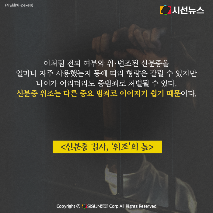 이처럼 전과 여부와 위·변조된 신분증을 얼마나 자주 사용했는지 등에 따라 형량은 갈릴 수 있지만 나이가 어리더라도 중범죄로 처벌될 수 있다. 신분증 위조는 다른 중요 범죄로 이어지기 쉽기 때문이다.