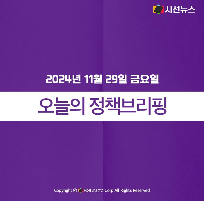 시선뉴스=양원민 기자 | 대한민국 정부 19개 부처에서는 추진하는 행정과 정책을 담은 보도 자료를 배포한다. 2024년 11월 29일 오늘의 정책브리핑을 소개합니다.