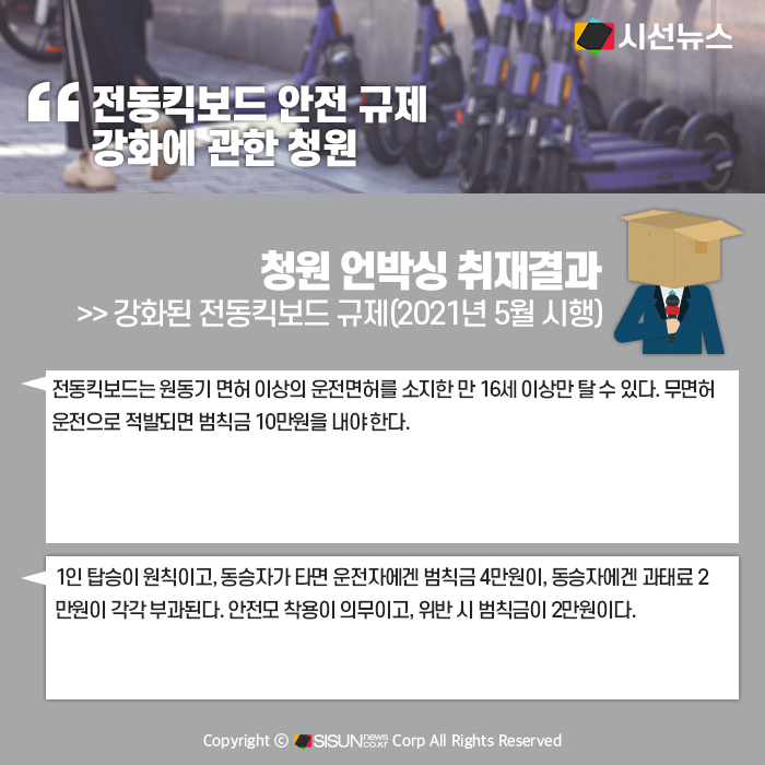>> 개정 도로교통법(강화된 전동킥보드 규제/2021년 5월 시행)