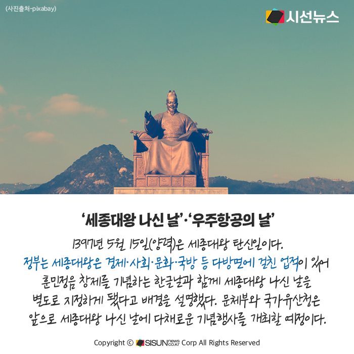 ‘세종대왕 나신 날’·‘우주항공의 날’