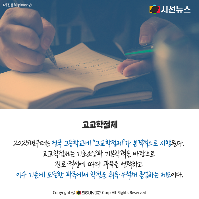 2025년부터는 전국 고등학교에 ‘고교학점제’가 본격적으로 시행된다. 고교학점제는 기초소양과 기본학력을 바탕으로 진로·적성에 따라 과목을 선택하고 이수 기준에 도달한 과목에서 학점을 취득·누적해 졸업하는 제도이다.