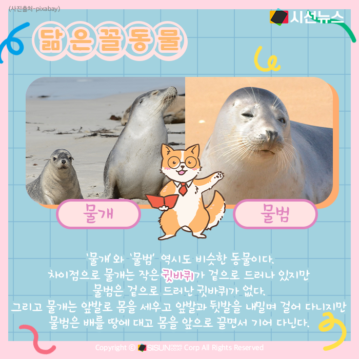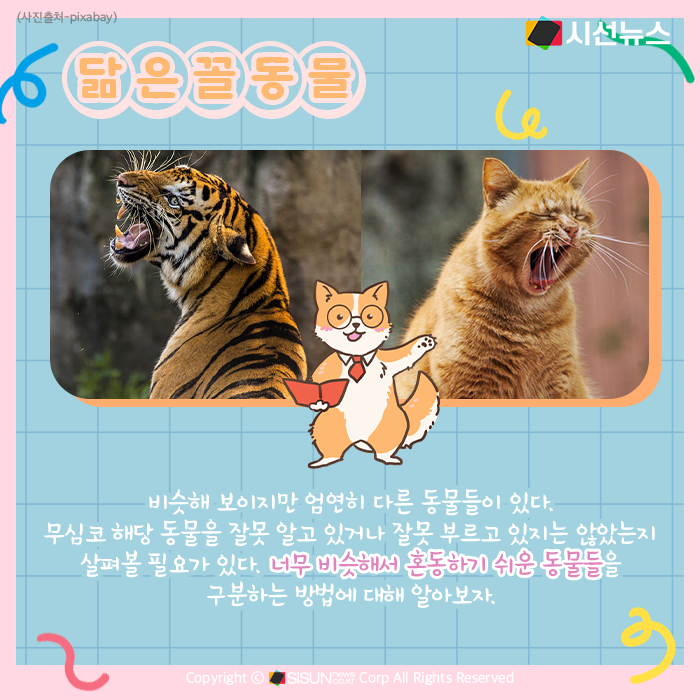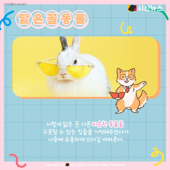 시선뉴스=박진아 기자 / 디자인=김선희 proㅣ비슷해 보이지만 엄연히 다른 동물들이 있다. 무심코 해당 동물을 잘못 알고 있거나 잘못 부르고 있지는 않았는지 살펴볼 필요가 있다. 너무 비슷해서 혼동하기 쉬운 동물들을 구분하는 방법에 대해 알아보자.
