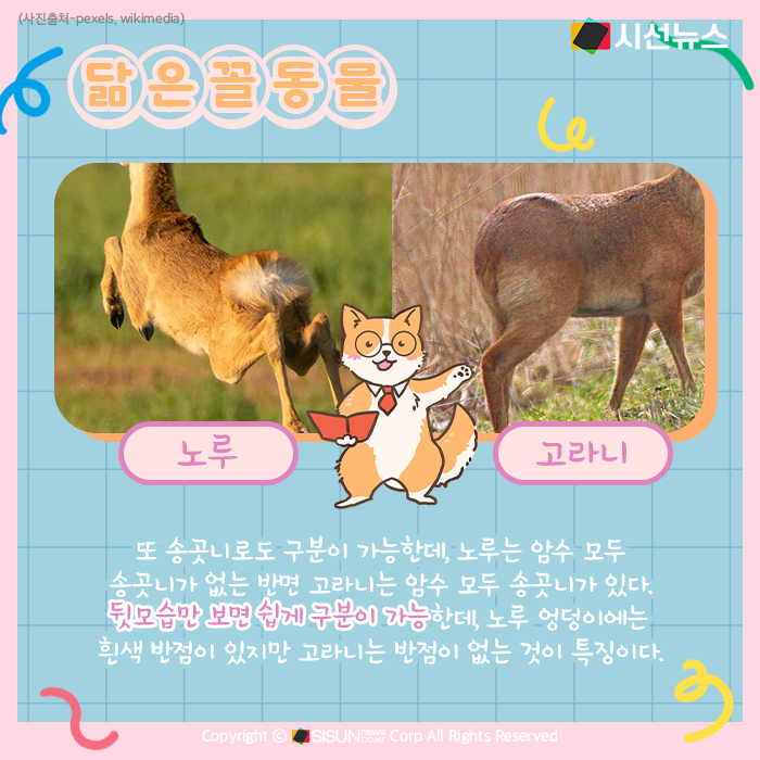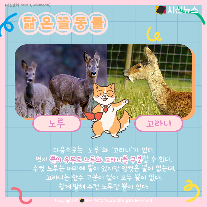 이렇게 닮은 듯 다른 비슷한 동물들. 구분할 수 있는 팁들을 기억해두었다가 나중에 유용하게 쓰이길 바라본다.
