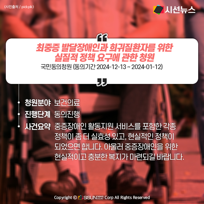 - 최중증 발달장애인과 희귀질환자를 위한 실질적 정책 요구에 관한 청원