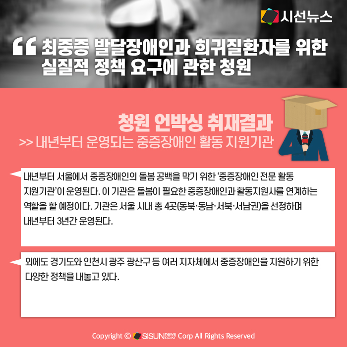 >> 서울시, 내년부터 중증장애인 활동 지원기관 운영