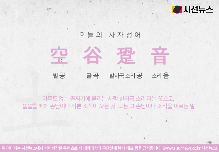 오늘의 사자성어 공곡공음[空谷跫音]입니다.