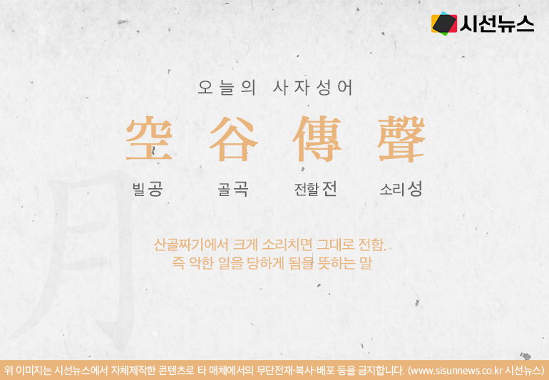 오늘의 사자성어 공곡전성[空谷傳聲]입니다.