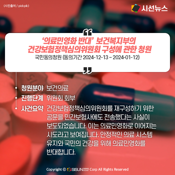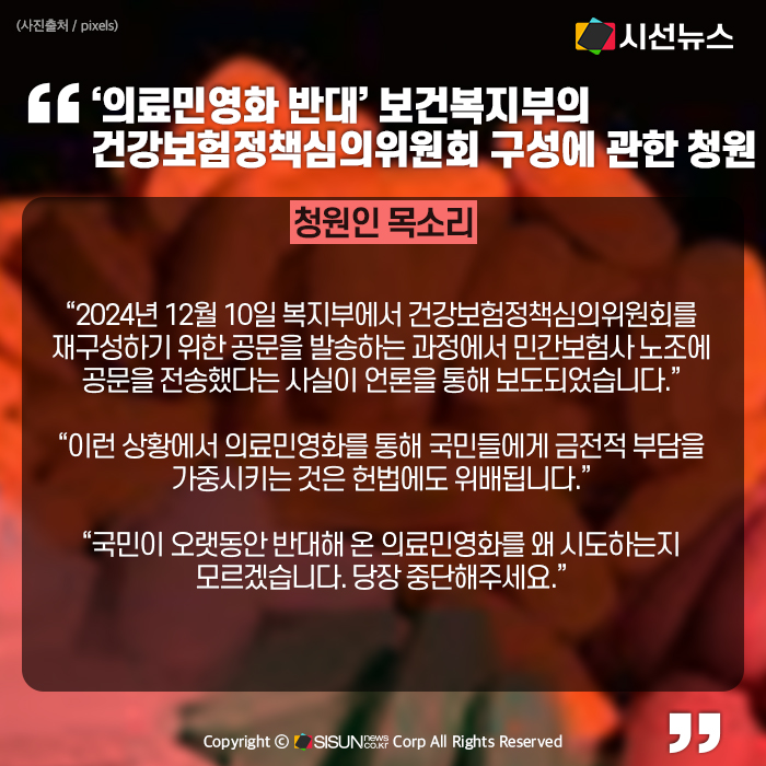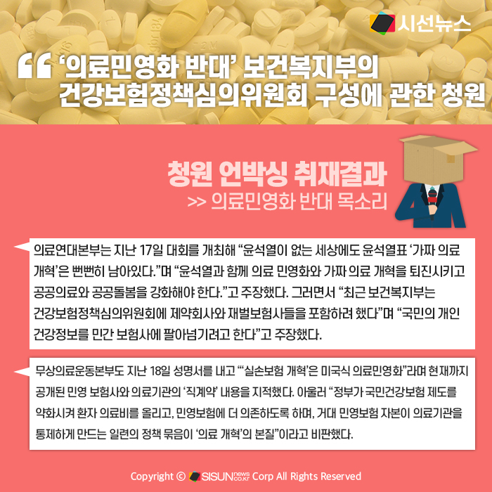 - ‘의료민영화 반대’ 보건복지부의 건강보험정책심의위원회 구성에 관한 청원