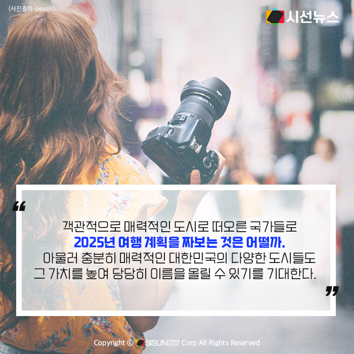 객관적으로 매력적인 도시로 떠오른 국가들로 2025년 여행 계획을 짜보는 것은 어떨까. 아울러 충분히 매력적인 대한민국의 다양한 도시들도 그 가치를 높여 당당히 이름을 올릴 수 있기를 기대한다.