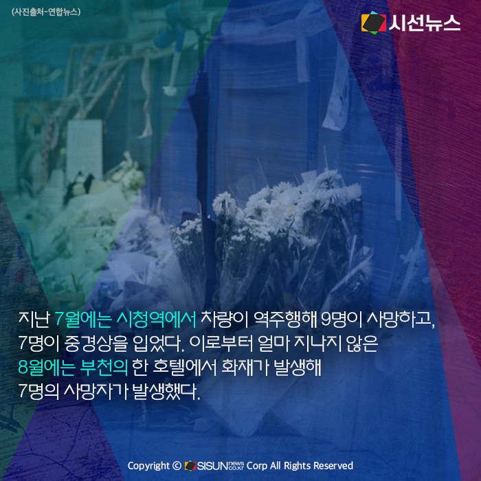 화재를 비롯한 안타까운 사고들도 여럿 있었다. 특히 전기차에서 화재가 발생하는 사고가 연이어 발생해 서울시는 ‘전기차 90% 충전제한 정책’을 추진한다고 밝혔다. 지난 7월에는 시청역에서 차량이 역주행해 9명이 사망하고, 7명이 중경상을 입었다. 이로부터 얼마 지나지 않은 8월에는 부천의 한 호텔에서 화재가 발생해 7명의 사망자가 발생했다.
