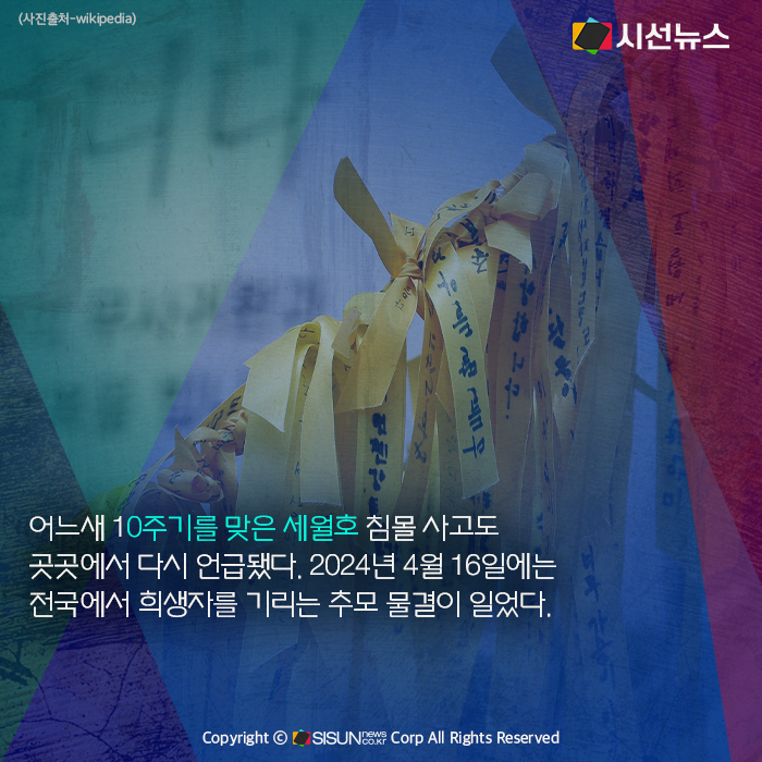 과거의 사건이 재조명되기도 했다. 한 유튜버가 무려 20년 전의 밀양 집단 성폭행 사건 주동자라며 누군가의 신상을 공개했기 때문이다. 그로 인한 파장은 꽤 오래갔다. 어느새 10주기를 맞은 세월호 침몰 사고도 곳곳에서 다시 언급됐다. 2024년 4월 16일에는 전국에서 희생자를 기리는 추모 물결이 일었다.