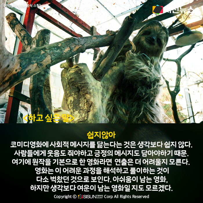 코미디영화에 사회적 메시지를 닮는다는 것은 생각보다 쉽지 않다. 사람들에게 웃음도 줘야하고 긍정의 메시지도 담아야하기 때문. 여기에 원작을 기본으로 한 영화라면 그 연출은 더 어려운 과정이 될 수도 있다. 영화는 이 어려운 과정을 해석하고 풀이하는 것이 다소 벅찼던 것으로 보인다. 아쉬움이 남는 영화, 하지만 생각보다 여운이 남는 영화일 지도 모르겠다.