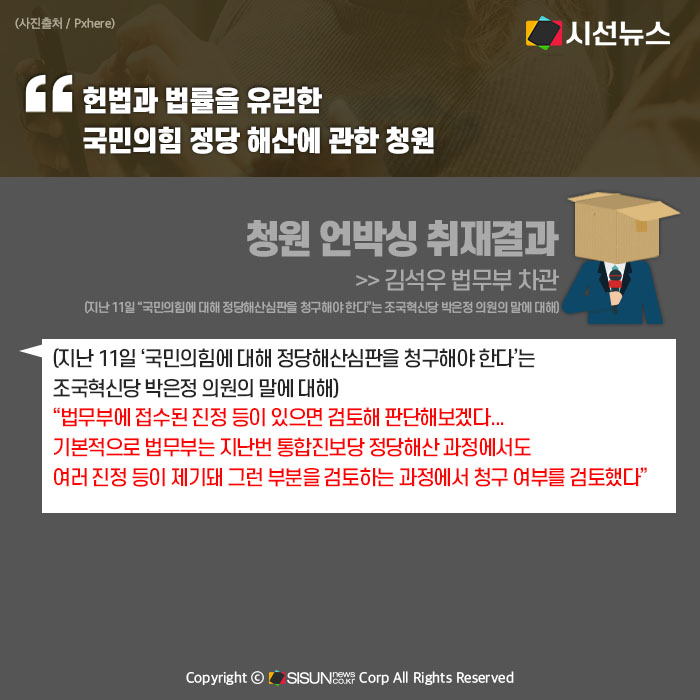 “법무부에 접수된 진정 등이 있으면 검토해 판단해보겠다...기본적으로 법무부는 지난번 통합진보당 정당해산 과정에서도 여러 진정 등이 제기돼 그런 부분을 검토하는 과정에서 청구 여부를 검토했다”
