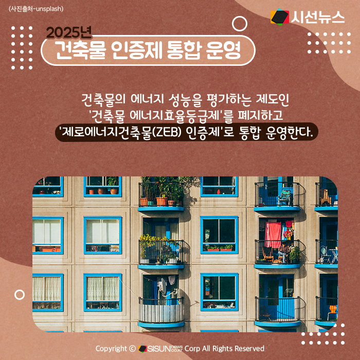 그리고 건축물의 에너지 성능을 평가하는 제도인 ‘건축물 에너지효율등급제’를 폐지하고 ‘제로에너지건축물(ZEB) 인증제’로 통합 운영한다. 별도로 운영하던 산업통상자원부의 ‘건축물 에너지효율등급제(10개 등급)’와 국토교통부의 ‘제로에너지건축물 인증제’를 통합 운영함으로써 제출 서류 간소화와 인증 소요 기간이 20일가량 단축될 것으로 예상된다.