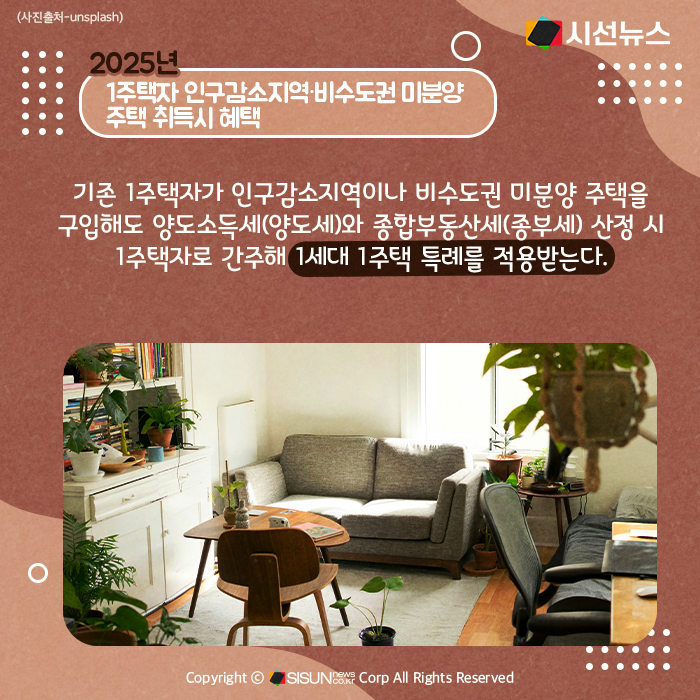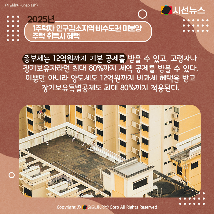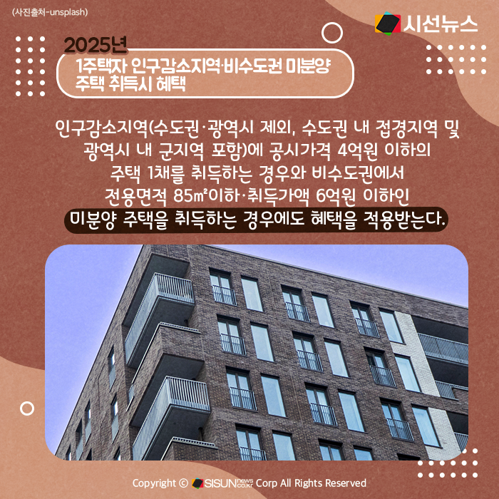- 1주택자 인구감소지역·비수도권 미분양 주택 취득시 혜택
