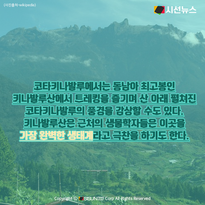 시선뉴스=박진아 기자 ㅣ추운 겨울이면 늘 생각나는 따뜻한 나라로의 여행. 겨울 해외여행지로 가장 많이 꼽히는 곳은 바로 동남아다. 그 중 오늘은 동남아 대표 인기 여행지 중 천혜의 자연환경을 자랑하며 가족 여행지로도 인기가 높은 동남아의 숨은 파라다이스, ‘코타키나발루’로 떠나보려고 한다.