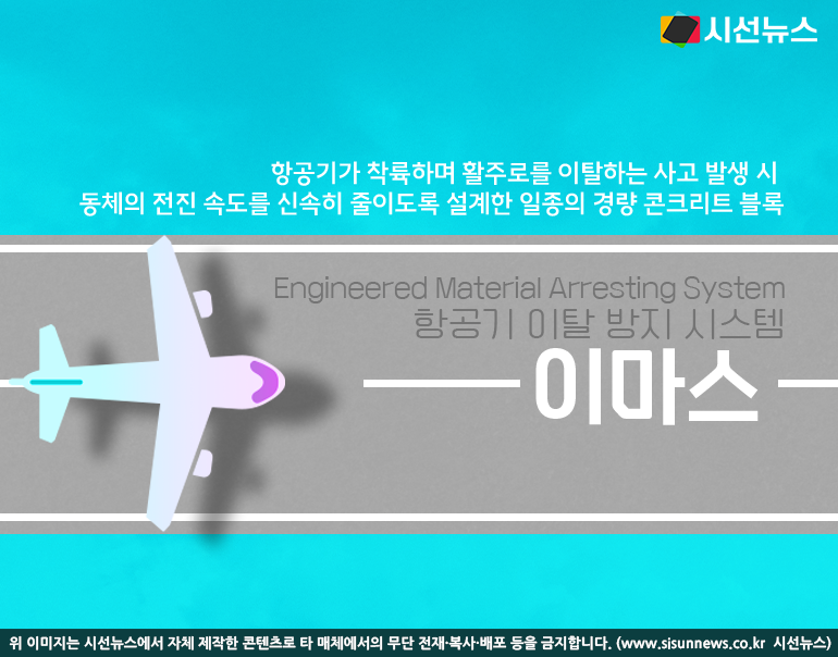 항공기 이탈 방지 시스템인 이마스(EMAS·Engineered Material Arresting System)이란, 항공기가 착륙하며 활주로를 이탈하는 사고 발생 시 동체의 전진 속도를 신속히 줄이도록 설계한 일종의 경량 콘크리트 블록이다. 항공기 바퀴가 이마스를 구성하는 경량의 소재를 부수면서 나아가는 과정에서 동체 속도가 급속도로 감속하게 되는 원리다.