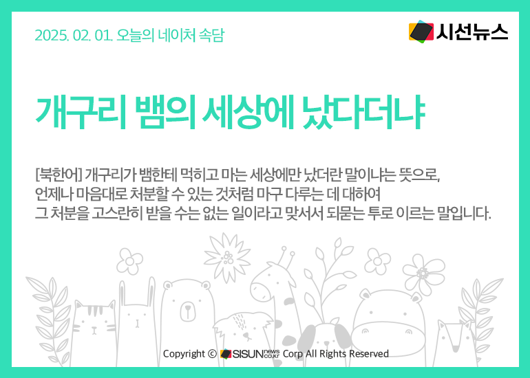 오늘의 네이처속담은 <개구리 뱀의 세상에 났다더냐>입니다.